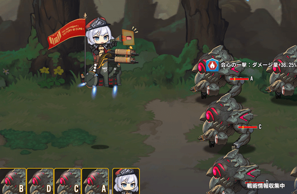 ウルは後列配置となると遠距離狙撃モードとなり、使用できるスキルが変化。