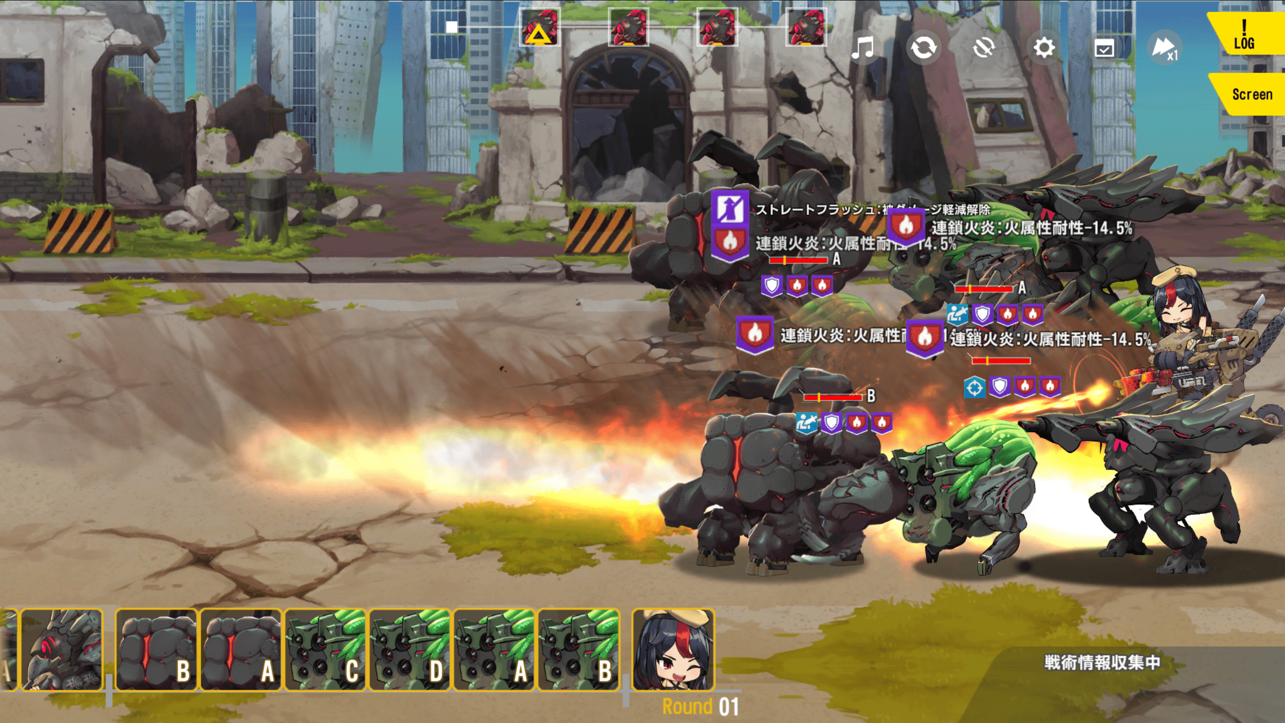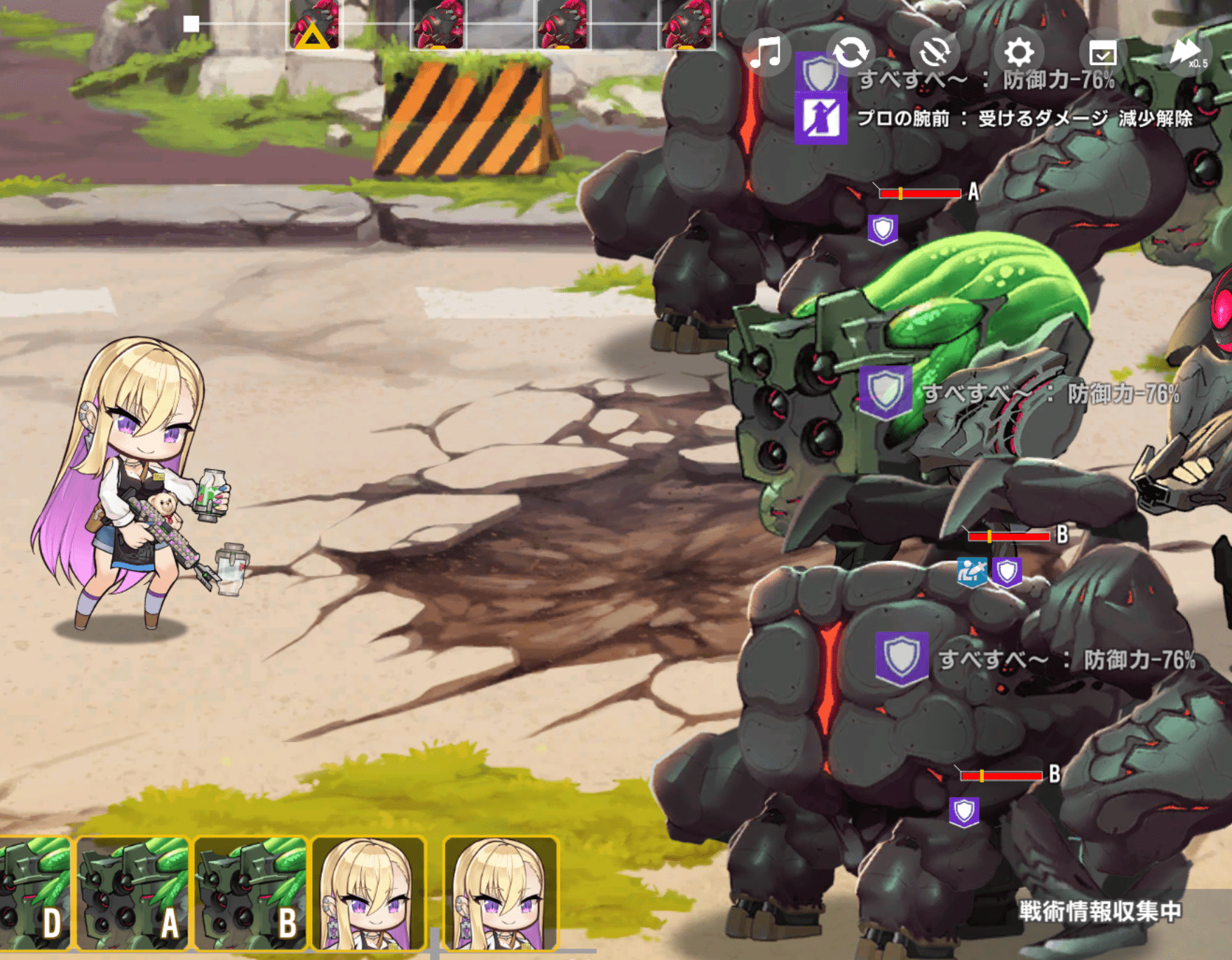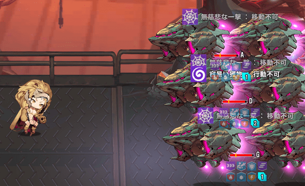 そのうちスキル1は横3マスのクリ時強化解除攻撃と化す……んですが……。