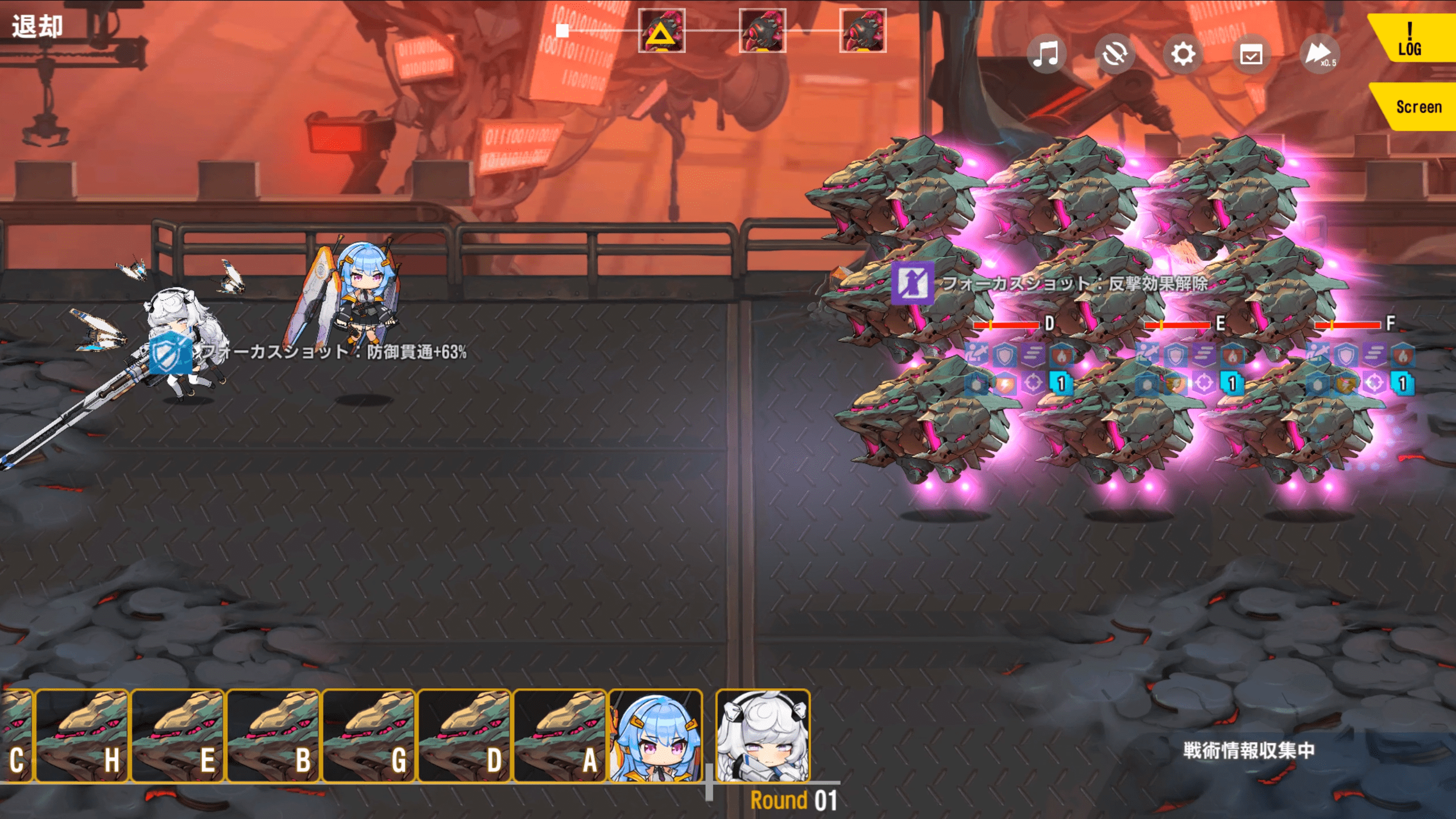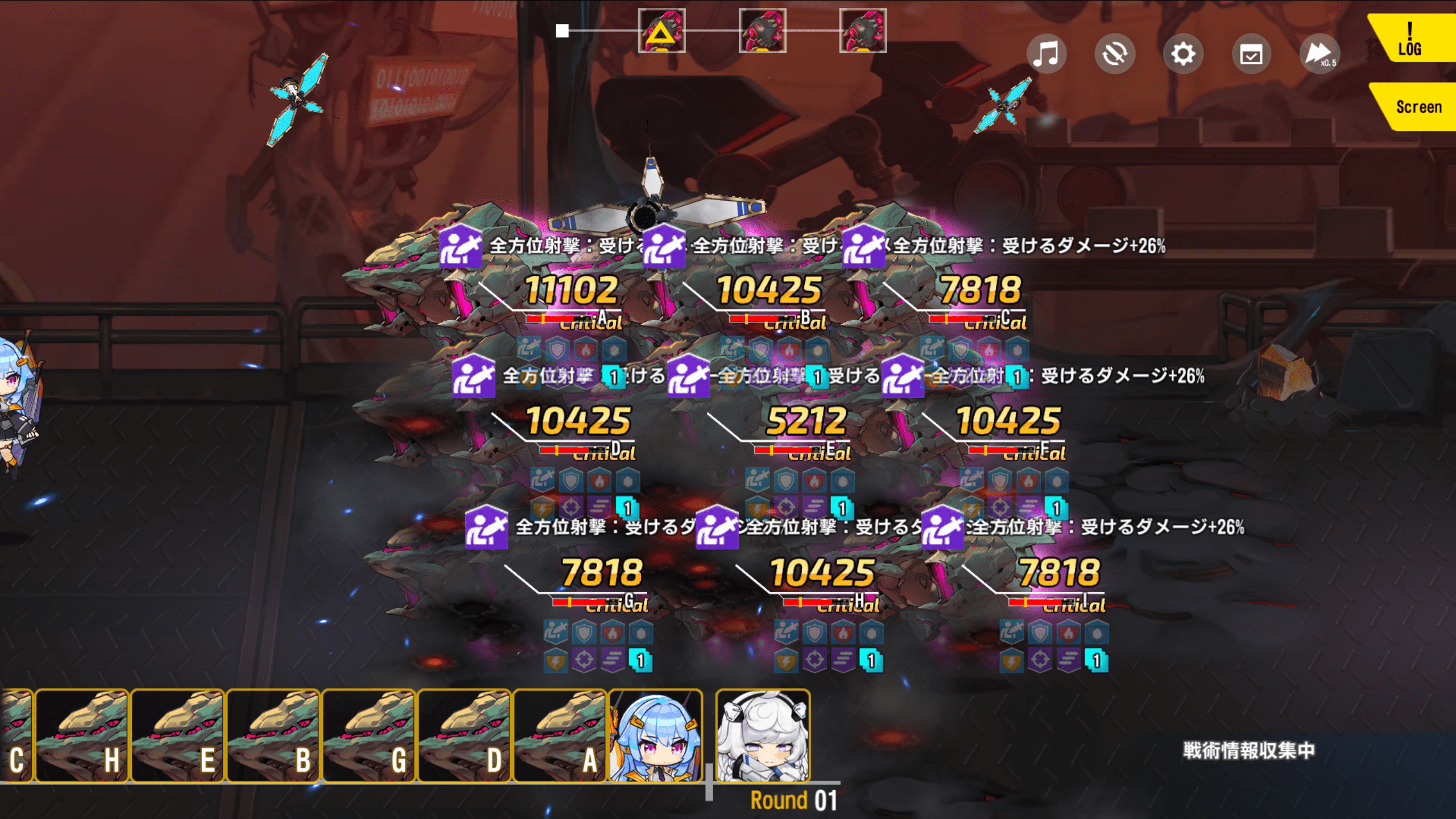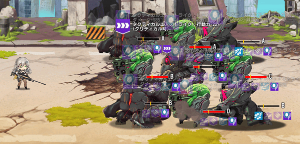 S以上昇級レプリコンはクリティカル発生時、スキル2の縦3マス範囲攻撃の命中対象に被ダメ軽減解除効果が追加されます。