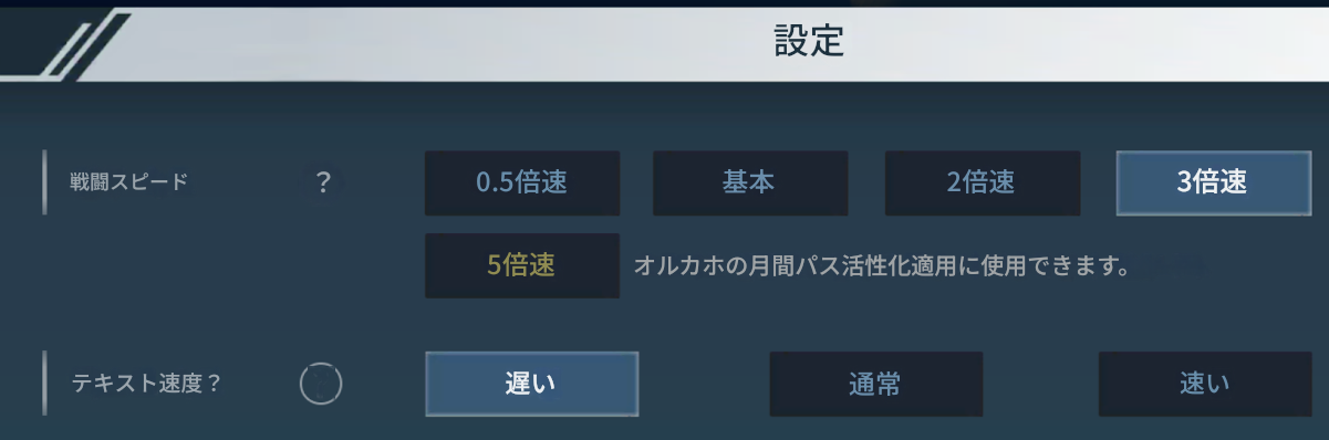 戦闘速度5倍速の追加(プレミアムオルカパス購入時)