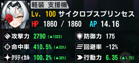 S昇級パッシブの性能覚えてなくてクリ値計算ミスりました……が採用理由であるEv1-4bでは仕事は余裕で可能です。