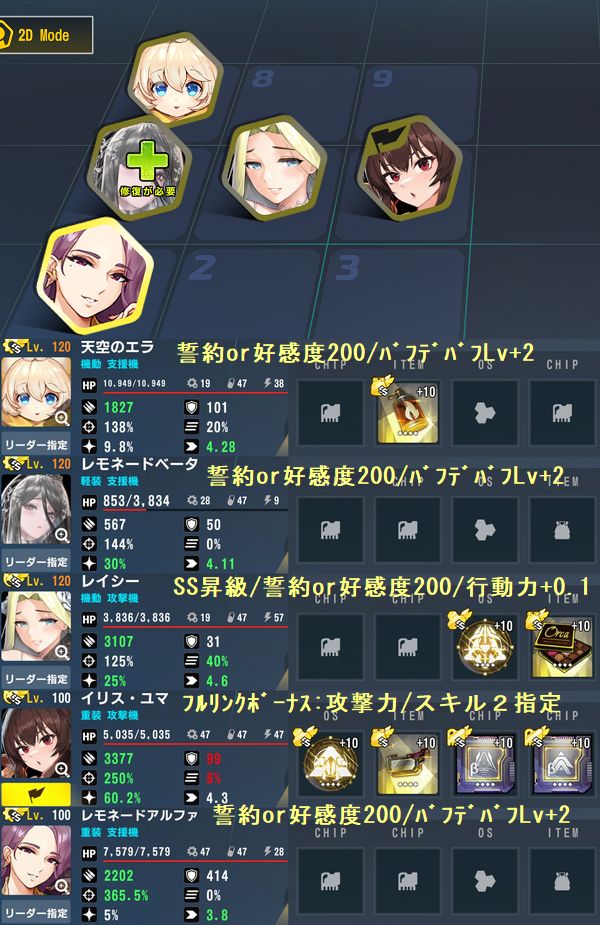 一部分かりにくいものもあるため、これを把握しているか否かで編成難易度を下げれることもあるはずです。