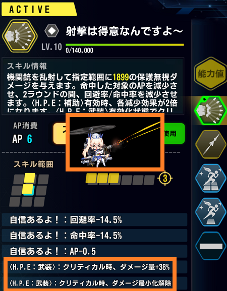 このダメージ最小化効果解除、は持っているキャラは多くなく、サイプリのスキル1やヴァルキリーのスキル2、そして武装モードのテティスくらいです。
