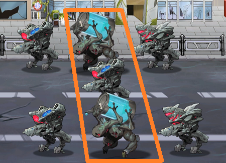 上の☆4/攻略の項目で記載した通りWave2のトータスだけ絶対残るので、適当な9マス範囲攻撃持ちで一掃後に被ダメ最小化効果解除スキルを持つ中で最もモーションが短いヴァルキリーのスキル2でぶち抜くだけの作業。
