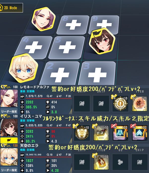 楽園Ev1-3Exコピペなので正直範囲9マス範囲の雑な攻撃アタッカーなら誰でもいいです。