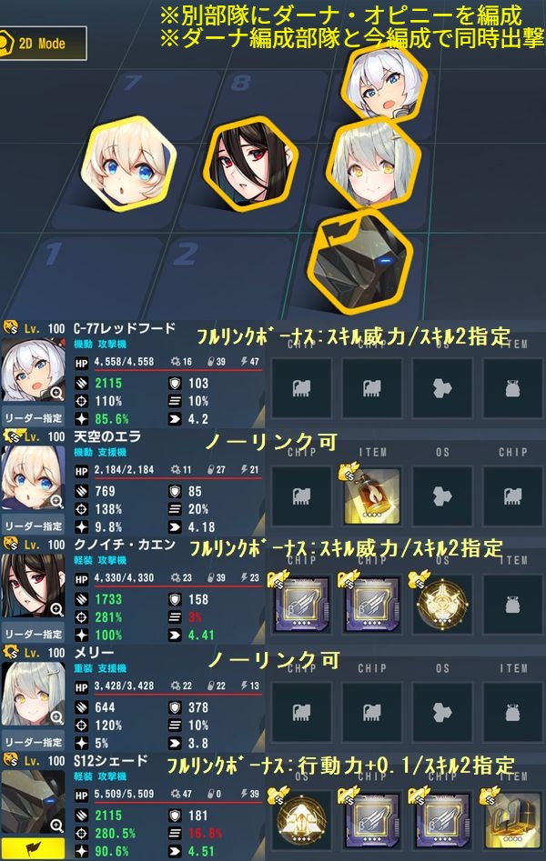 普通の周回に出すメリットは(最短記録時間獲得のためにノードロップを狙って反復戦闘したり、デイリー以外は)ほぼなくなっています