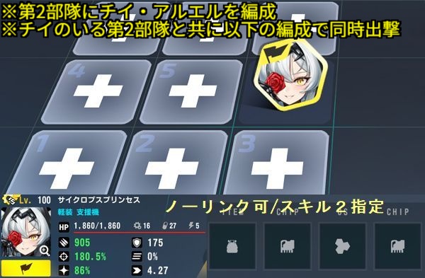 総員スキルレベル10で装備なし(マイティだけテティスより先行行動してしまい遅延なので安定OSを装着。気にならなければ無くても良い)ステ振りなしでノーリンクで添えているだけでした。