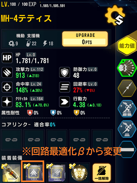 テティスというと特定の装備を装着すると性能が変化する特殊なパッシブ持ちであることが特徴的な隊員です。
