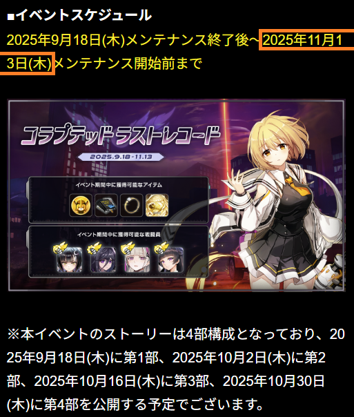 ・ソウルワーカーコラボイベント"コラプテッドラストレコード"は4部構成。2か月開催