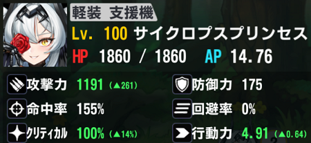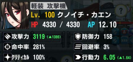上の☆4/攻略の項目で記載した通り冷気編成は苦しい、物理だと防御貫通100%近くが欲しい、のでジェニーで交換できるハルちゃんを3リンクにするかその辺で拾ったS重装攻撃機を5体リンクして300%リンク相当にして9マス範囲攻撃を連打して壊滅させる作業。