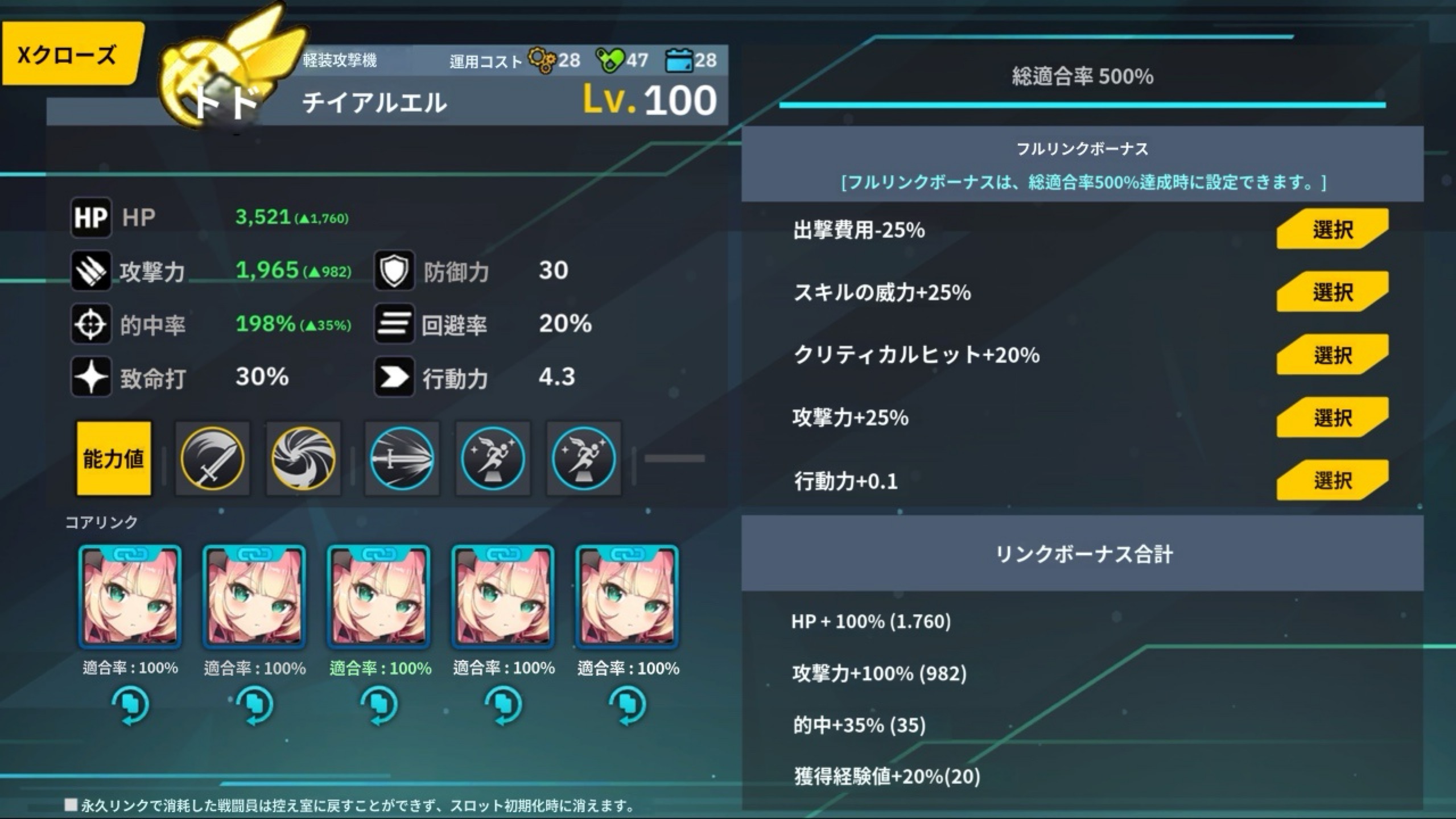 日本版実装後に上記画像同様のステやリンクボーナスになっていなければ不具合ですので、筆者ととに問い合わせてくれると非常に助かります。