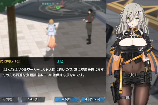 少なくともハルルートを進めていて合流したナビちゃんは、自身を「第二世代」「ソウルワーカーではない」と話すなど自身の能力不足を知りながらも自分なりに努力をしてソウルワーカーたちに並ぼうとする強い子です。