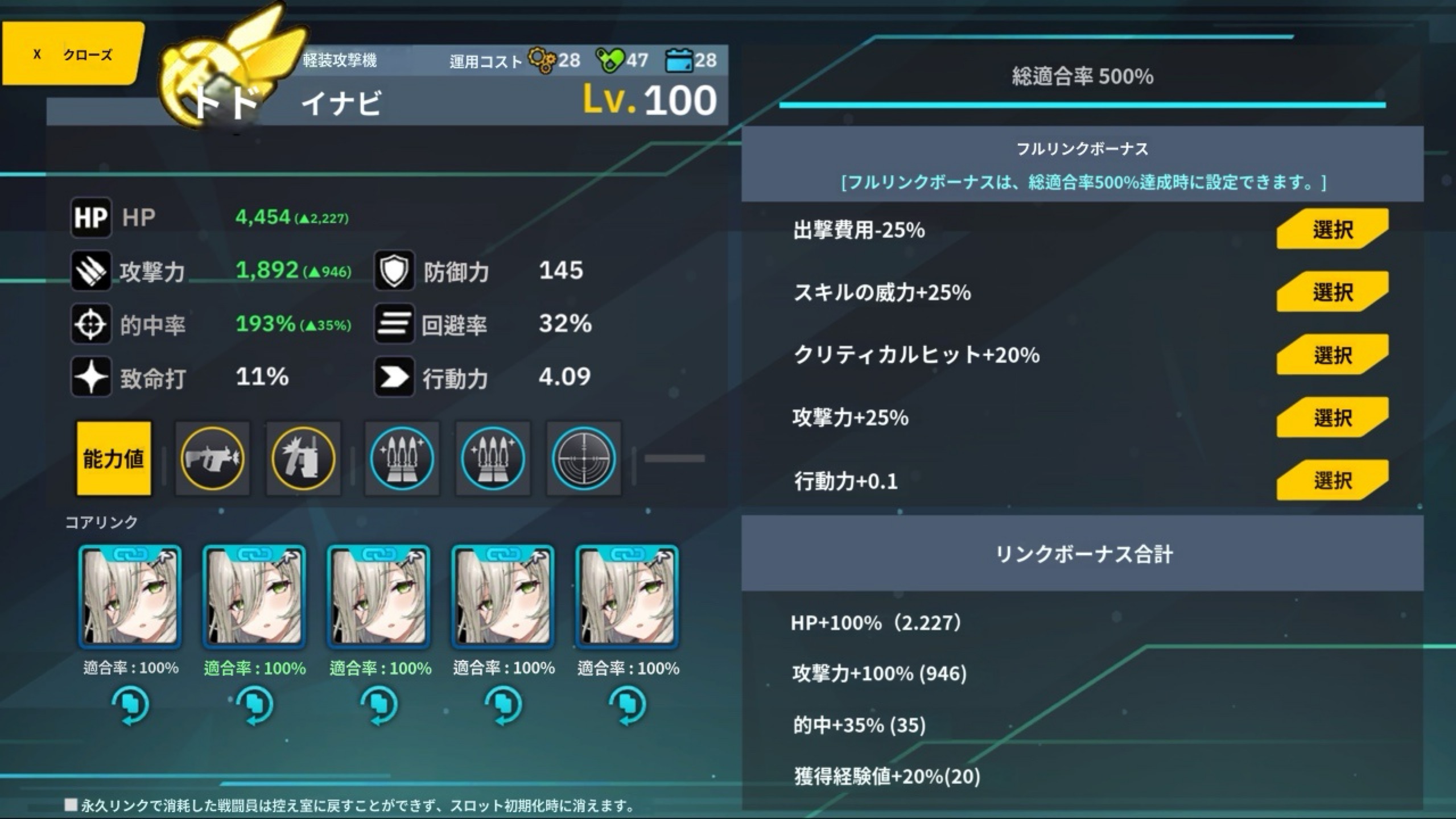 日本版実装後に上記画像同様のステやリンクボーナスになっていなければ不具合ですので、筆者ととに問い合わせてくれると非常に助かります。