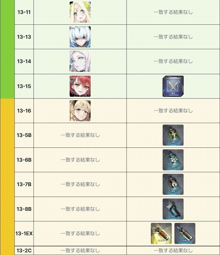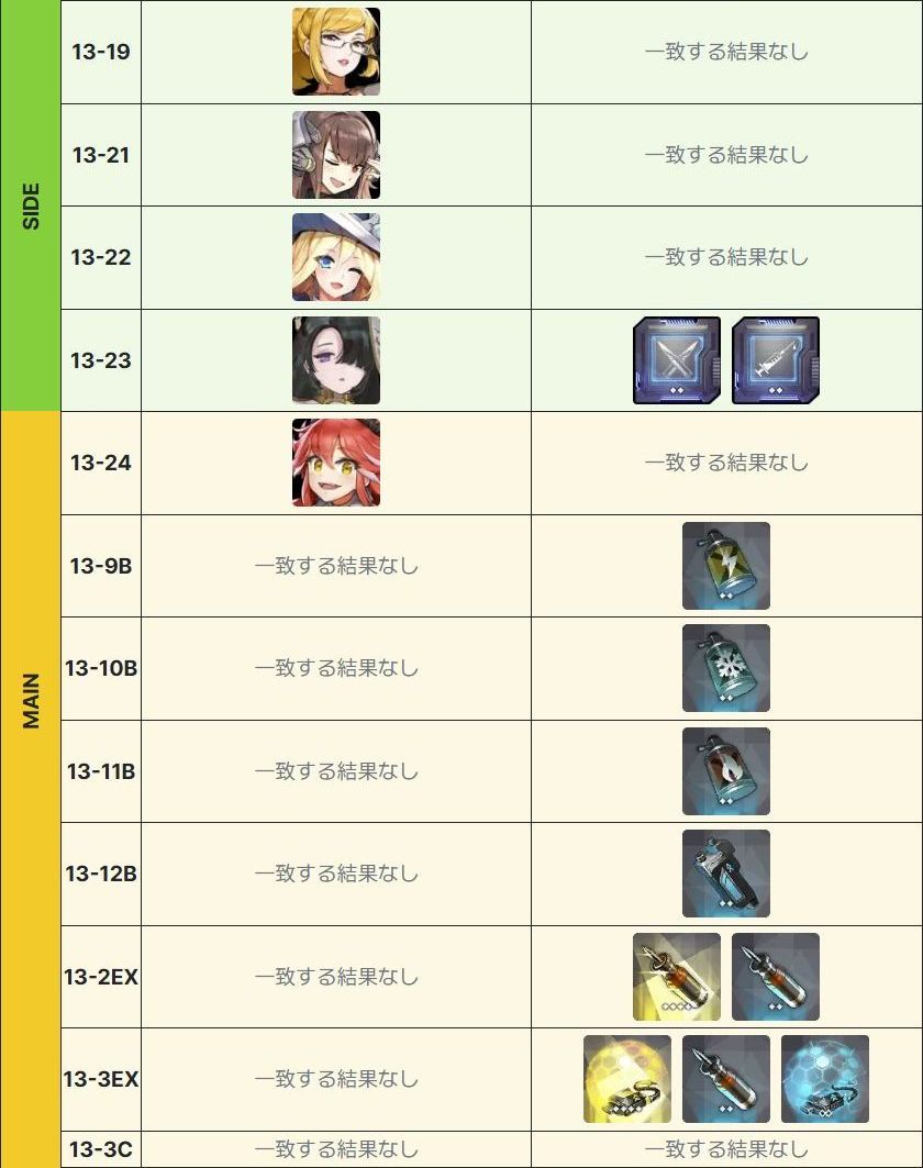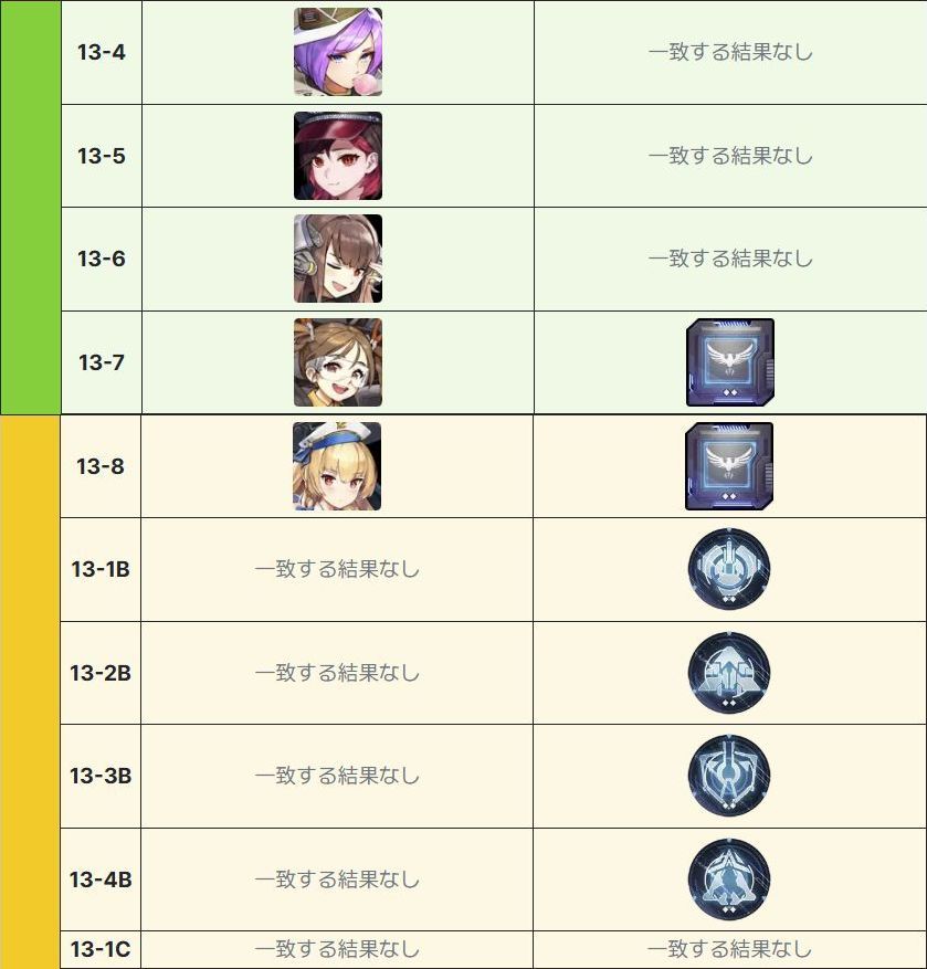 獲得先としてはAランクの獲得を13-8Bで初回クリア報酬として、そしてドロップとして13-15、13-23で獲得することができS以上の獲得は装備昇級が必須となっています。