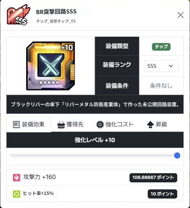 SSS+10でさえあるなら防御増加値、回避増加値共に既存のSSS防御チップβ、SSS回避チップβを超える数値なため、防御型でも回避型でも場面によってはタンカーの最適解になりえます。