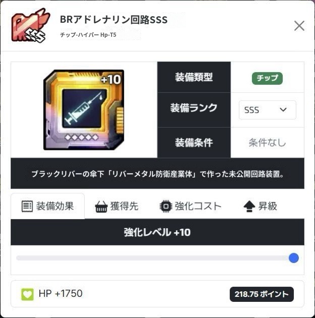HP増加チップ系の最上位と言える装備です。
