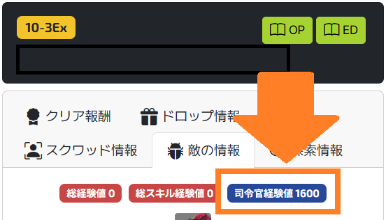 10-3Exでは司令官経験値1600が手に入るため、司令官経験値を稼ぎ指揮熟練度だけをあげ特定の司令官Lvに到達させたい(150、200、250など節目でツナ缶50などを獲得可能)時に有用でした。