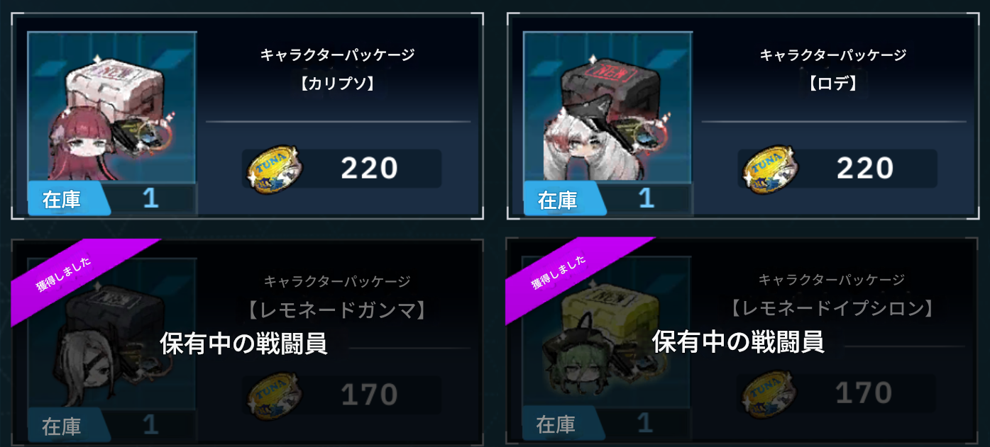 なお13章まで未到達で、到達がだるすぎて進める気がないのだとしてもキャラ自体をツナ缶で購入することでお迎えすることは可能です。