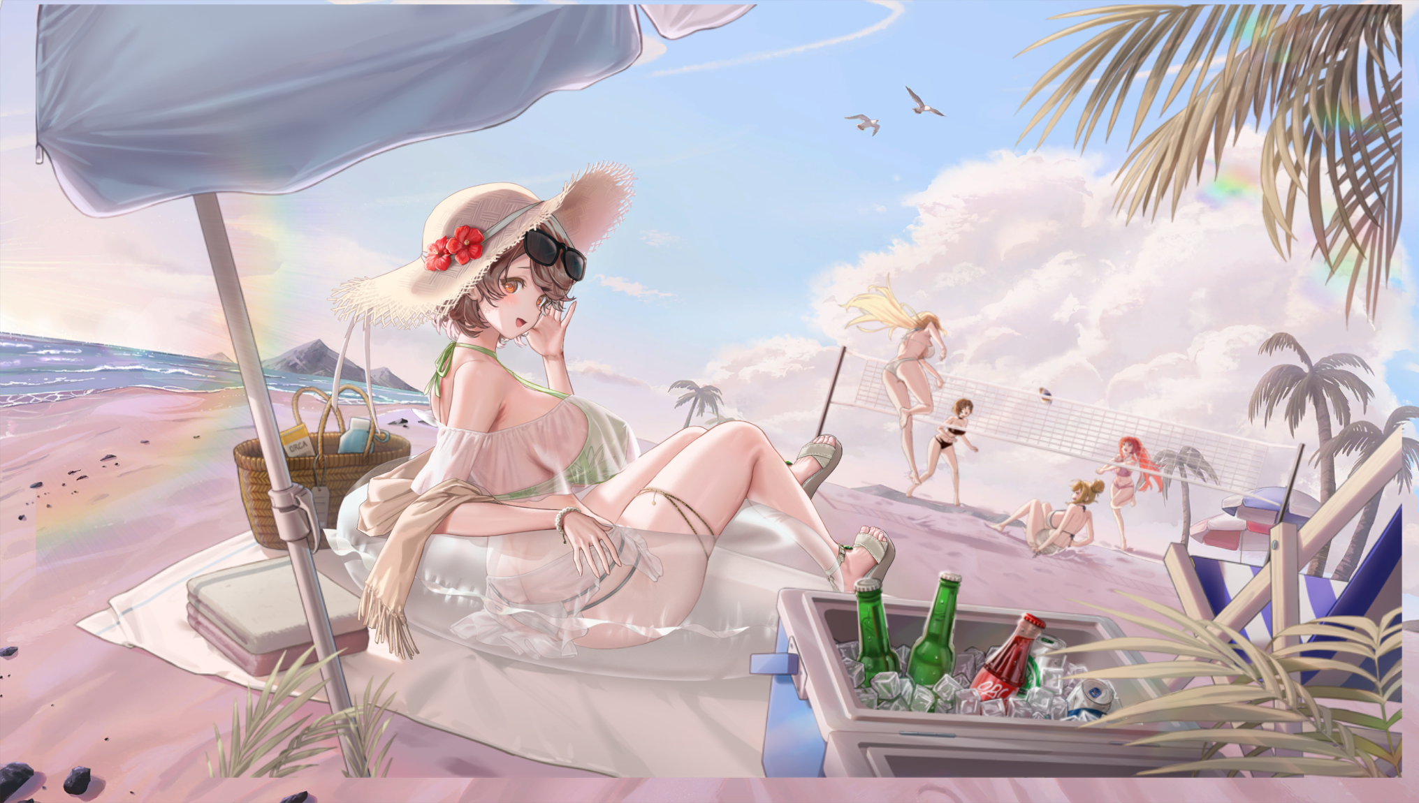 司令官と一緒に夏休みに海へ出かけるスチールライン!隊員たちのビーチバレーボールを見物するあなたにはにかむような顔で浮き輪を持ったシルキーが近づいてきてひそひそと話します。「司令官、私の水着も一緒に見てもらえませんか…?」
