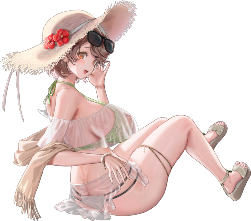 司令官と一緒に夏休みに海へ出かけるスチールライン!隊員たちのビーチバレーボールを見物するあなたにはにかむような顔で浮き輪を持ったシルキーが近づいてきてひそひそと話します。「司令官、私の水着も一緒に見てもらえませんか…?」
