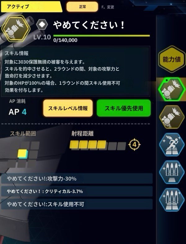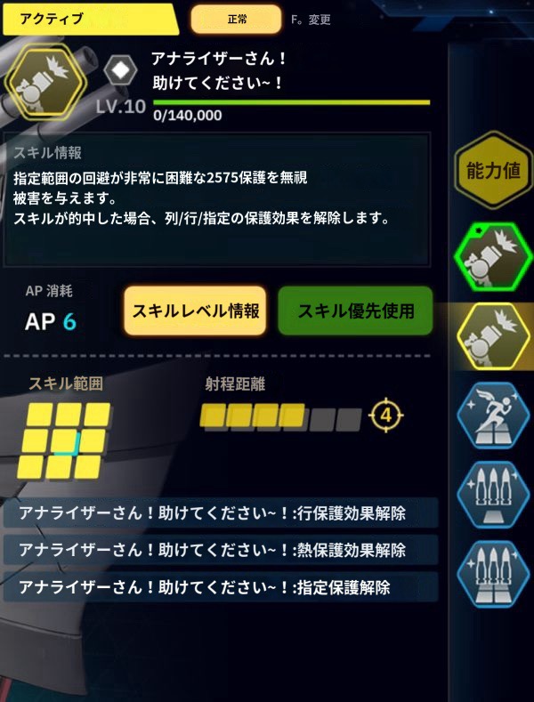 以下の画像は本国版ラストオリジンの実機のものであり、育成完了済みのSSランクLv120フルリンク、誓約済みのフルリンクボーナス未設定のスキルレベル10となっています。
