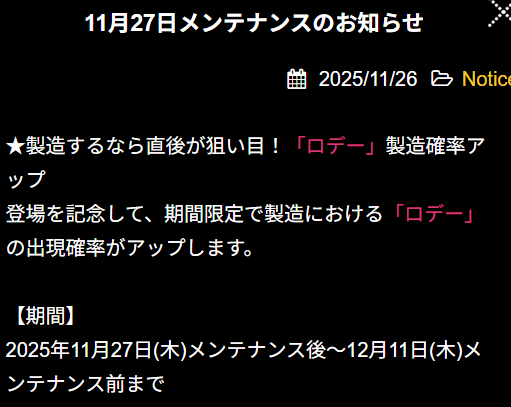 ピックアップがあるうちは期待できるかもしれませんが、それでも基本的にはただただ本当にロデーが出るレシピのうち最小値ってだけです。