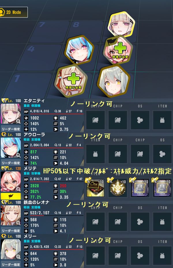 13-8だけリリーの上にエタニティを添えて、リリーに手動でメルトのスキル2を使用するだけでサクサクとクリアできます。リリーの命中290欲しいところを足りてないっぽい?→13-8だけ300欲しいっぽい