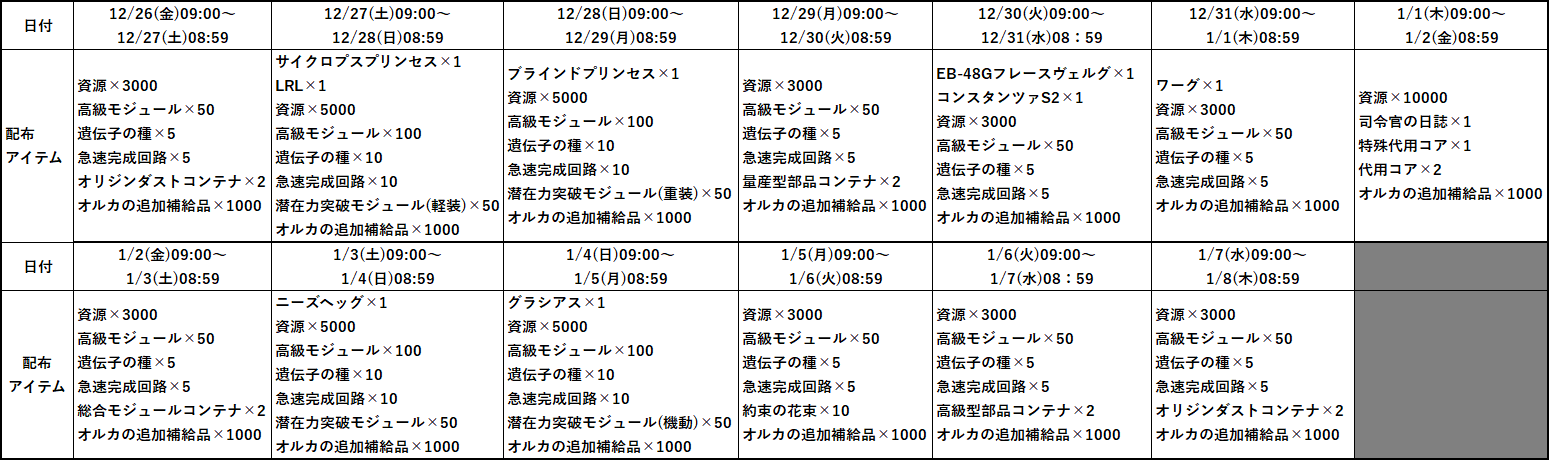 2025年12月24日(水)メンテナンス後~2026年1月22日(木)メンテナンス前までは配布があります。
