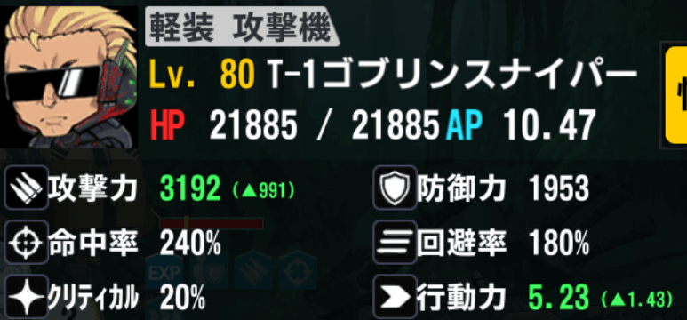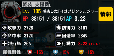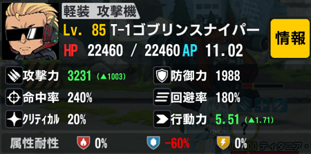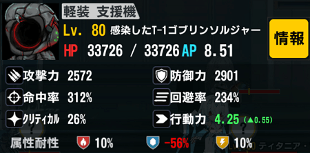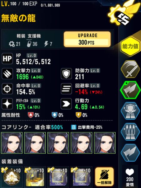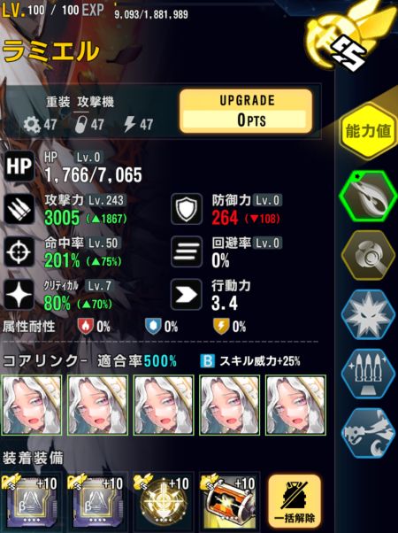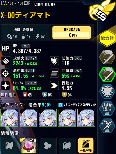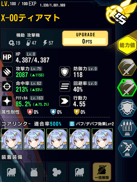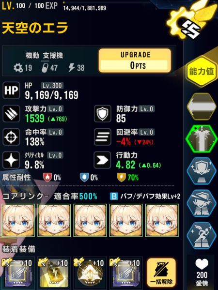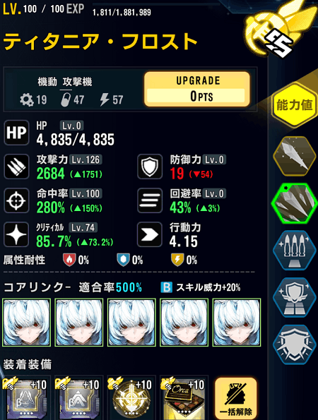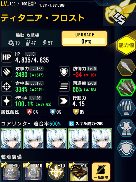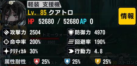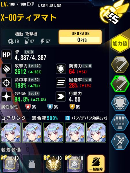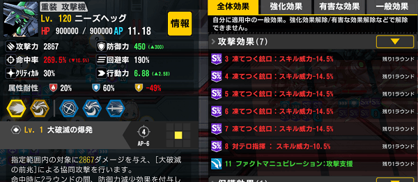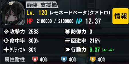 Round1開始時のステータス。ティアマトからの命中クリ行動力バフありがたい