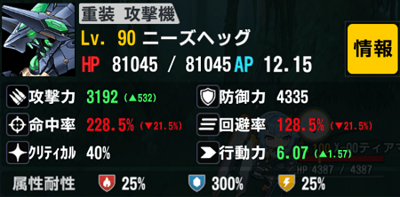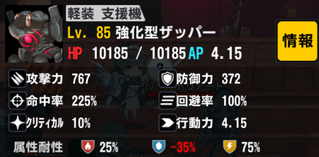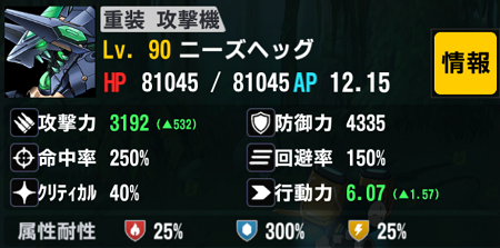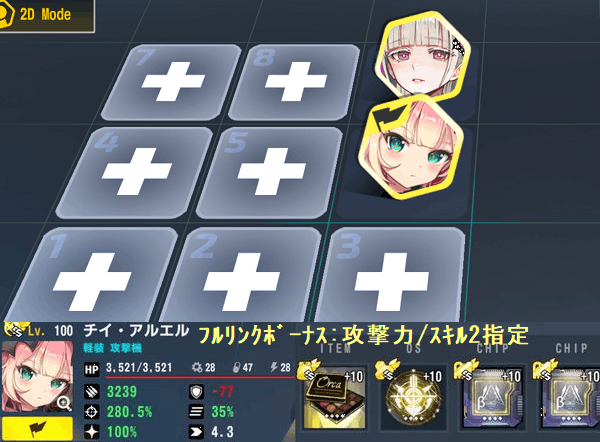 中破運用なのに自傷ダメを受けるという大きなデメリットがあるだけに増加値が凄まじく、スキルレベル12相当の今回は自己バフだけで攻撃値+77.5%も増加しているという。