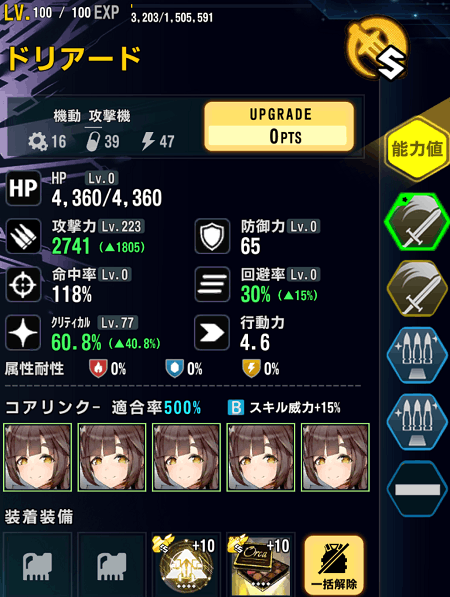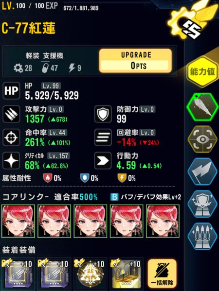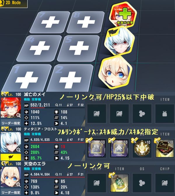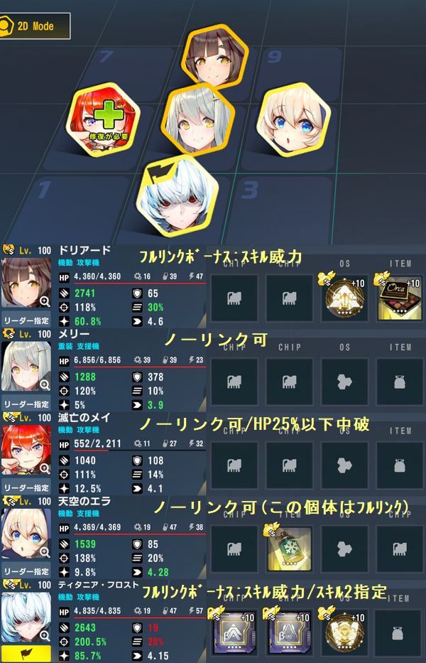普通の周回に出すメリットは(最短記録時間獲得のためにノードロップを狙って反復戦闘したり、デイリー消化や研究進行稼ぎ以外は)ほぼなくなっています。