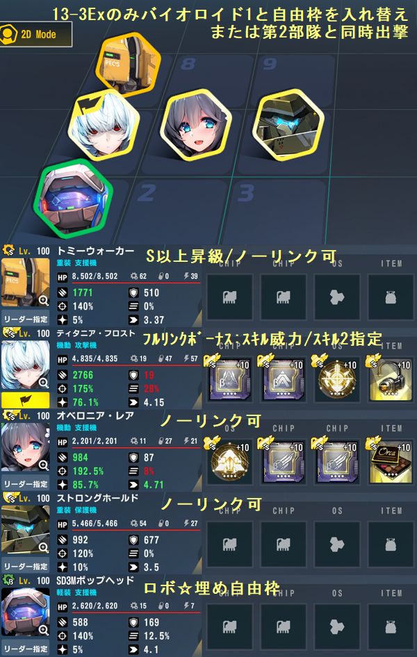 Cステは仕方ないとして、それ以外は重装編成でバイオロイド2以下でロボット3以上でクリアできればいいので、デススト編成になるかなと……。