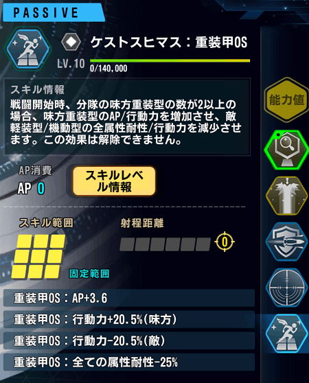 主な役割:重装2以上…敵全域の重装以外の遅延かつ各種属性耐性低下&味方重装の大幅加速