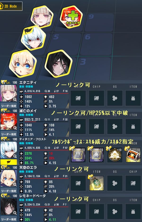 一部分かりにくいものもあるため、これを把握しているか否かで編成難易度を下げれることもあるはずです。