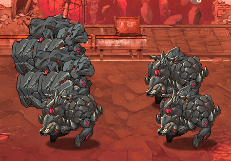 出現の仕方は様々で、鉄虫ゴブリン系だけだったり鉄虫ゴブリン系と完全に8章組の敵が混ざったりですが、どちらにせよ対策が完全に同じなのでこれら6種のステージをまとめて攻略しようと思うと重装のみの編成で、バイオロイド2で、AGS3の編成なら星埋めに適していると分かります。