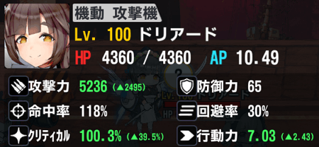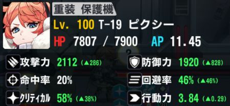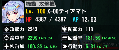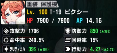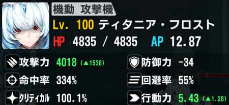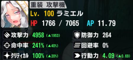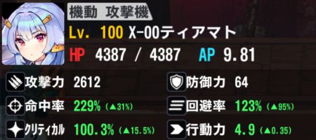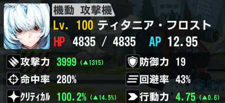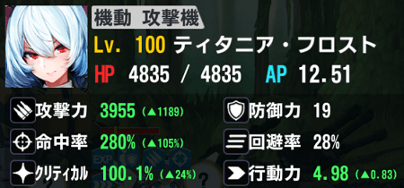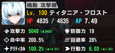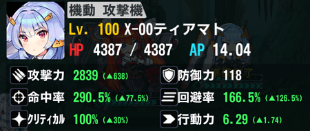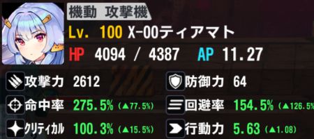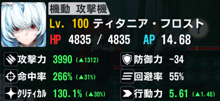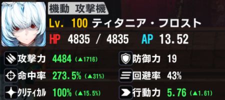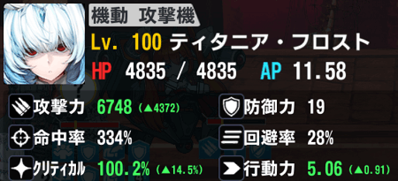 Round1開始時のステータス。ティアマトからの命中クリ行動力バフありがたい