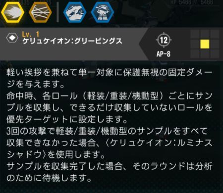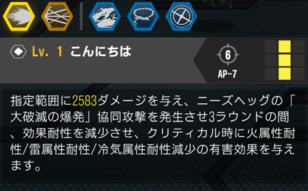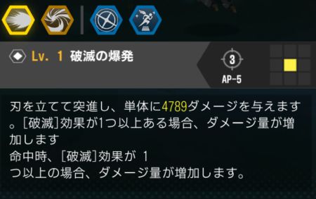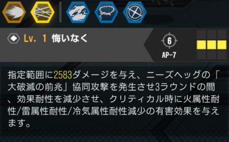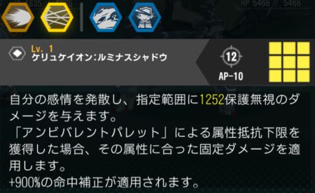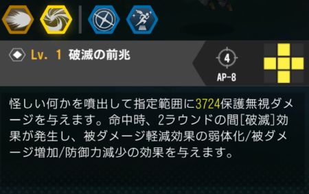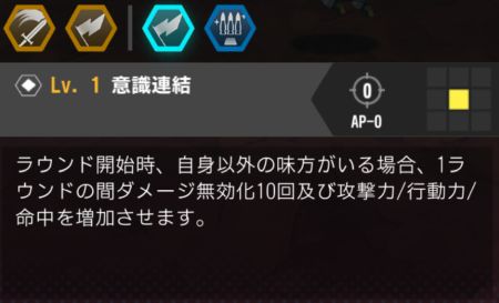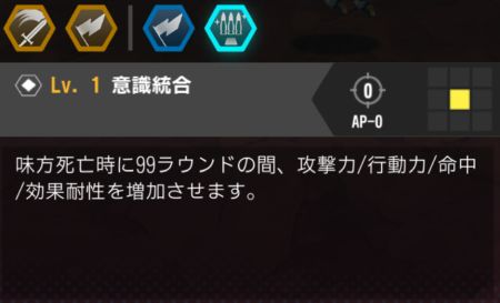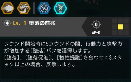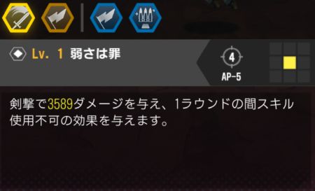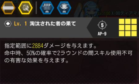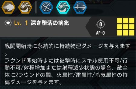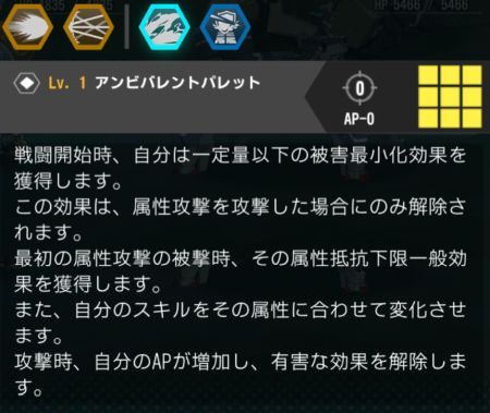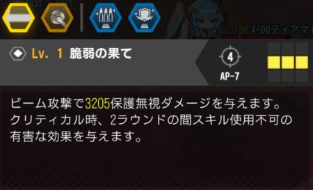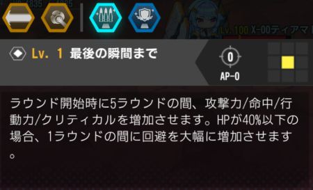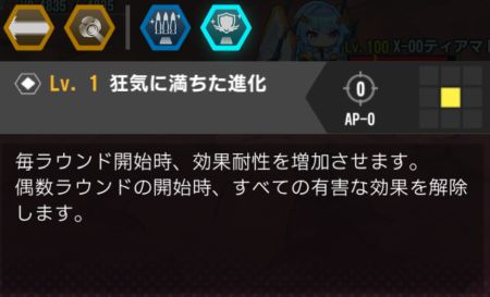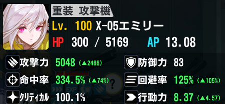 エミリーはHPが33%以下だとモードチェンジし、"リミッター解除"状態(攻撃/行動力/回避増加/アクティブスキル強化/攻撃分だけRound終了時に固定ダメ被弾)へと移行します。