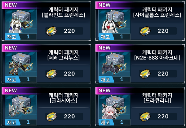 【パッケージリスト】・キャラクターパッケージ[レモネードイプシロン] –170ツナ缶・キャラクターパッケージ[バーバリアナ] –220ツナ缶・キャラクターパッケージ[メリー] –220ツナ缶・キャラクターパッケージ[マキナ] –220ツナ缶・キャラクターパッケージ[ドラキュリナ] –220ツナ缶・キャラクターパッケージ[グラシアス] –220ツナ缶・キャラクターパッケージ[N2W-888アラクネー] –220ツナ缶・キャラクターパッケージ[ペレグリヌス] –220ツナ缶・キャラクターパッケージ[サイクロプスプリンセス] –220ツナ缶・キャラクターパッケージ[ブラインドプリンセス] –220ツナ缶・キャラクターパッケージ[ニーズヘッグ] –220ツナ缶