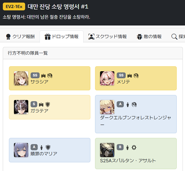 そのサラシアとメリテも日本版だと6月以降に実施が予定されている新イベントのドロップリストにいることが確認されているため、このイベントが来るまでにキャラを育て装備を強化し、施設研究の精密分解施設Ⅴを開放し資源運用環境を改善すれば新イベントが開催中の間にひたすら掘ることが可能です。