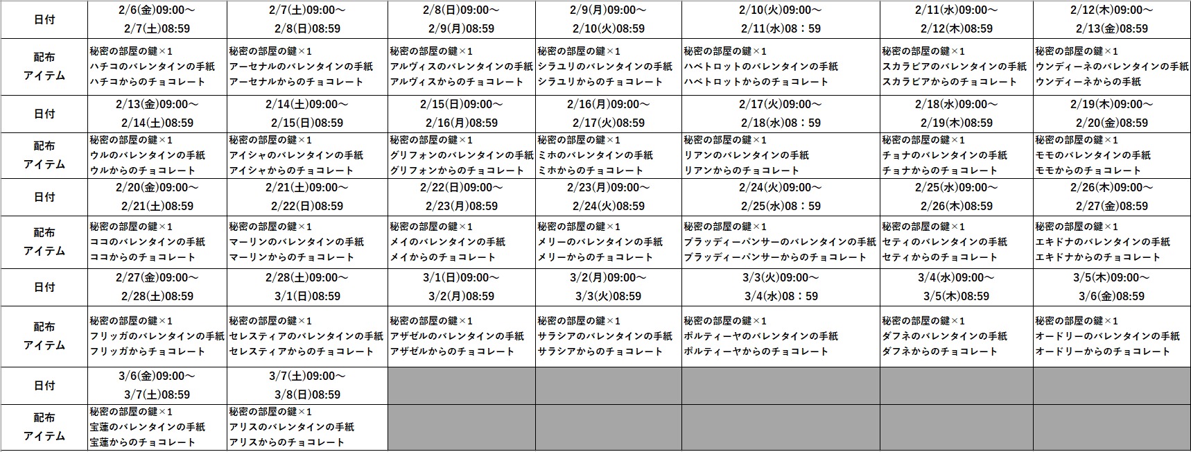 日替わりチョコもらえる!バレンタインログインイベントが実施