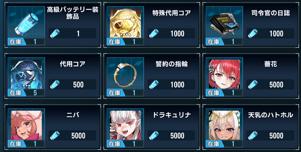 この中だとブラインドプリンセス(左上の銀髪)が非恒常ドロップ組で、他は恒常ドロップが存在するリストです。