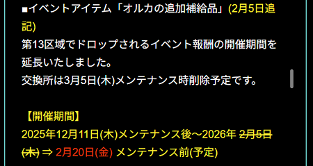 オルカ補給品追加のドロップは26/02/20まで!まとめ
