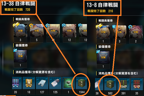 当然各々で決められた自律戦闘時間内(3時間~12時間)に周回数を稼ぐためには高速クリア時間が短いほど有効で、最短の30秒が最高値となります。