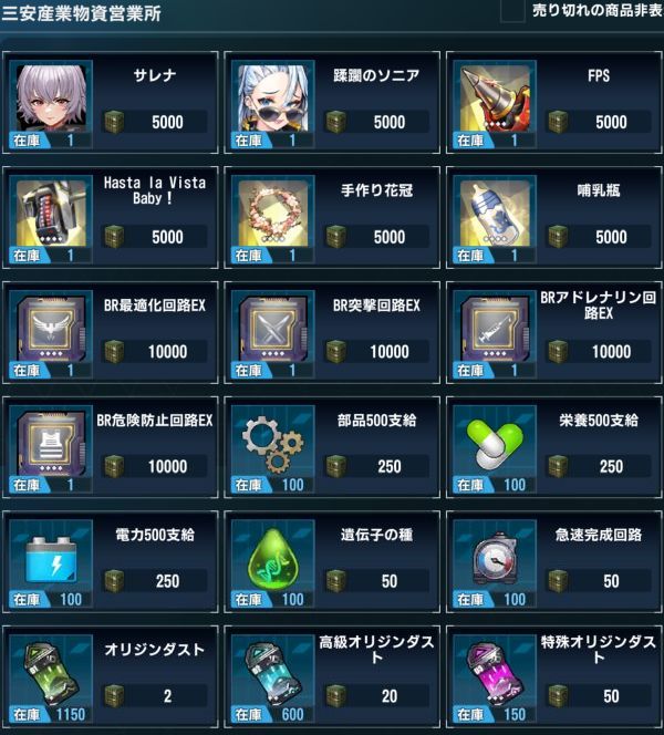 周回で集めるのが基本の品々。研究進行やロボ研究で不足気味な材を交換しよう。