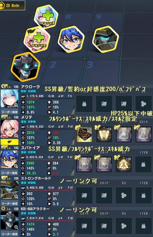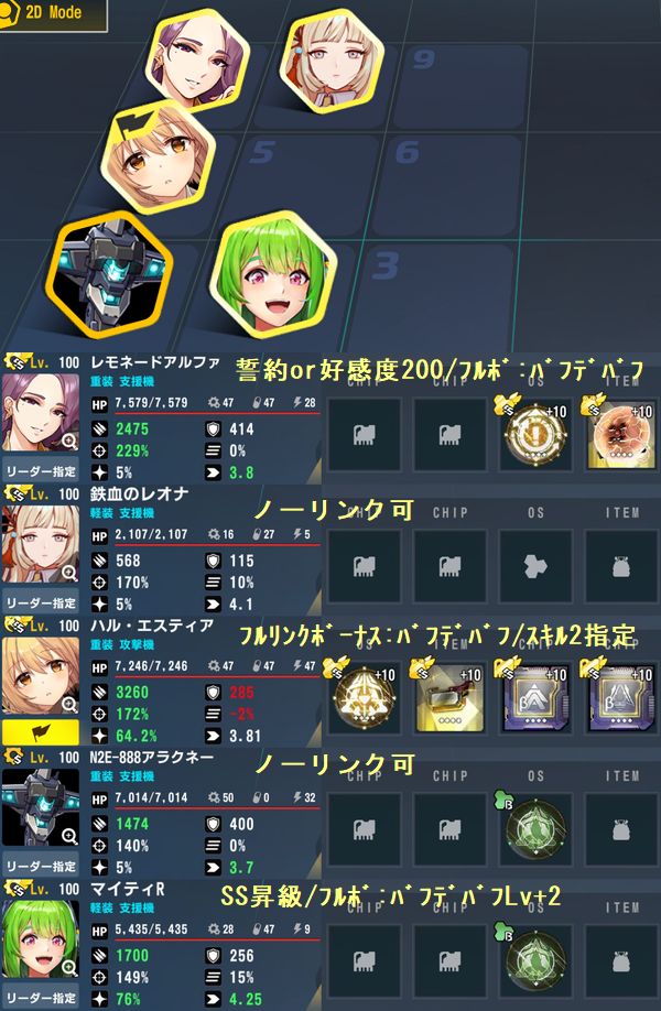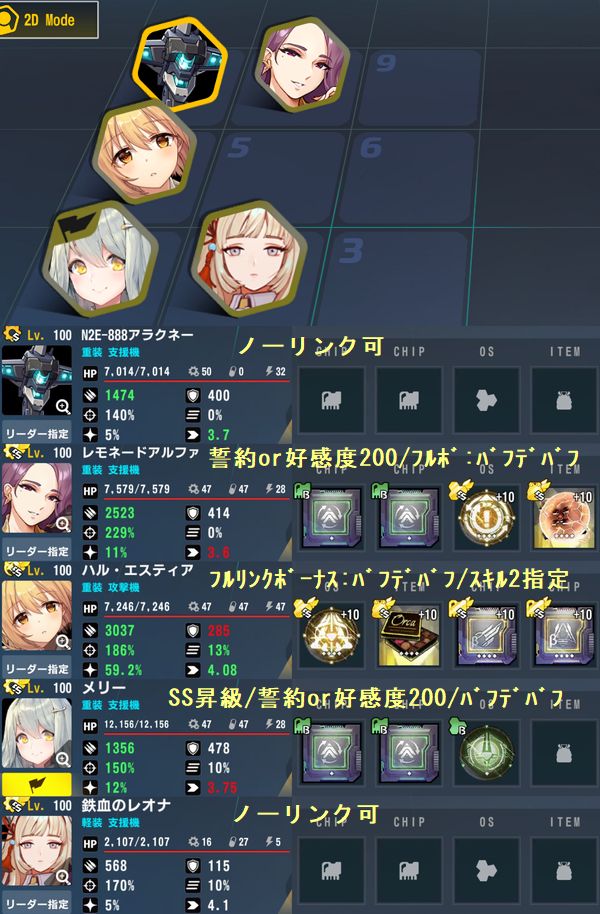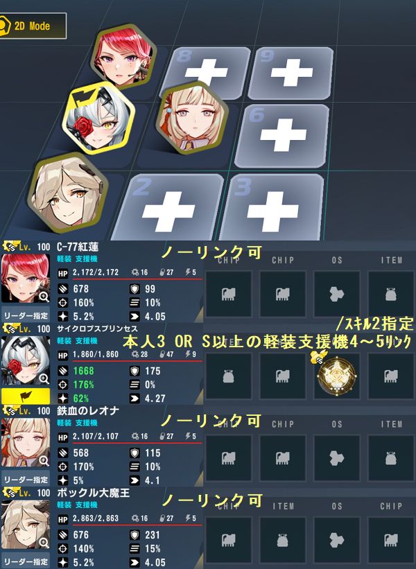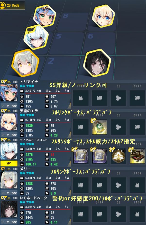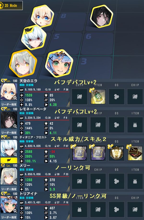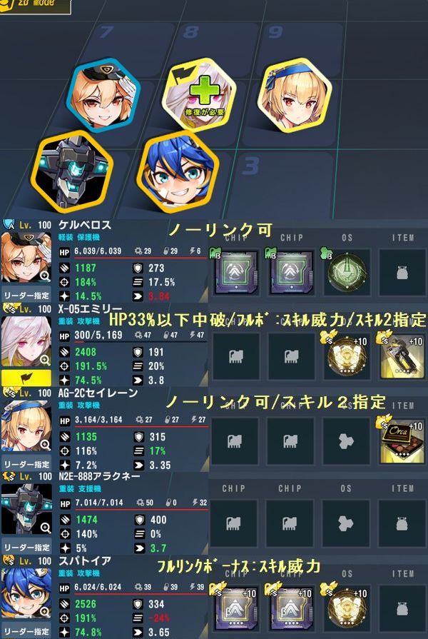 敵HPは最大でも6600程度ですし保護効果持ちも不在なので、チイのフルリンクは別になくてもいいですし装備もなくても問題ないという。