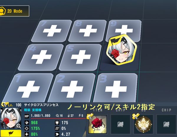 当ブログだとお馴染みサイプリ本人が恒常ドロップがないので、S以上またはSSの軽装支援機をサイプリ以外の誰でもを4~5リンクして素ステを稼ぐ運用で全ステージ汎用が可能です。